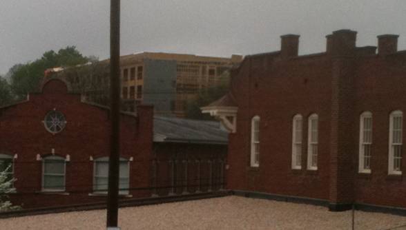 March 31, 2012. Photograph by Kirk Sanders of Hilltop House Apartments on Cherry Street (taken from S. Main near the Moravian Coffee Pot)*