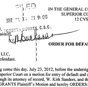 Order for $86,174.00 awarded in court in July in Forsyth County Superior Court pursuant to Motion for Default Judgment.